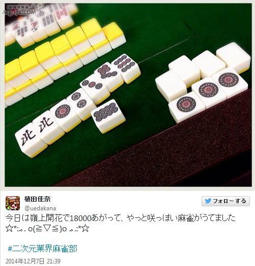 「天才麻將少女」中宮永咲神乎其技的麻將水平讓觀眾們每每都不禁咂舌,戲稱作品為超能力麻將少女。而宮永咲的CV植田佳奈,現實生活中也是個重度的麻將愛好者,眾人都稱她為雀莊(麻將館)莊主,昨天她在牌桌上,居然實現了成名絕技“嶺上開花”!