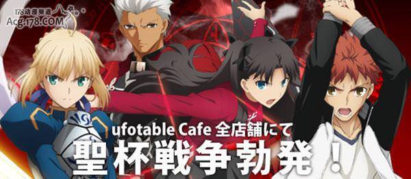 ufotable Cafe是以ufotable旗下的相關作品為主題所開設的餐飲店。並有名為「Fate/Zero Cafe」的Q版4格漫畫,故事以「Fate/Zero」的角色為中心,圍繞大家在Saber開的咖啡店中的各種歡樂日常展開~其中吾王、槍哥、龍之介、韋伯和ASSASSIN都是店員,而其他角色們則是顧客,其中少年版的切嗣和他兒時的伙伴夏麗也被加到了顧客之中。本次投票的角色會隨著故事的發展而增加。
