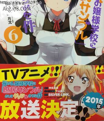 根據「我被綁架到貴族女校當“庶民樣本”」第6卷漫畫單行本書帶上的情報,這部作品的電視動畫版預定將于今年年內首播,並同時披露了主創團隊成員。據悉,曾出品過「Fate/kaleid liner 魔法少女☆伊莉雅」、「三坪房間的侵略者!?」等作品的動畫制作公司“SILVER LINK.”,將會著手該作的制作要務;而曾執導過動畫「Fate/kaleid liner 魔法少女☆伊莉雅 2wei!」、「望實與君雄」的神保昌登,以及參與制作過「死神Bleach」、「Servant×Service」等作品的下山健人,將會分別擔當本作的監督和系列構成。