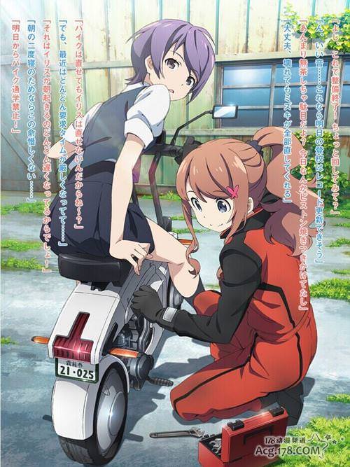 之前公開的一張主視覺圖中,是兩位少女在修理機車的內容。而故事似乎是跟賽車有關,目前具體詳情未知,還請等待後續發表。官網中配在主視覺圖旁的對話文字內容是:「好!准備完成了,去兜兜風吧?」「嗯,這聲音聽起來很棒…那麼明天可能能刷新抵校記錄了」「別太勉強哦。這活塞今天才裝好呢。」「沒事,就算壞了,水樹也會全部修好的」「摩托能修好,伊莉斯可修不好哦~?」「不過啊,最近的時間限制越來越嚴格了……」「那是因為伊莉斯你最近早上起床的時間越來越晚了吧!」「回籠覺就是我的生命呀……」「明天不准騎摩托上學了!」