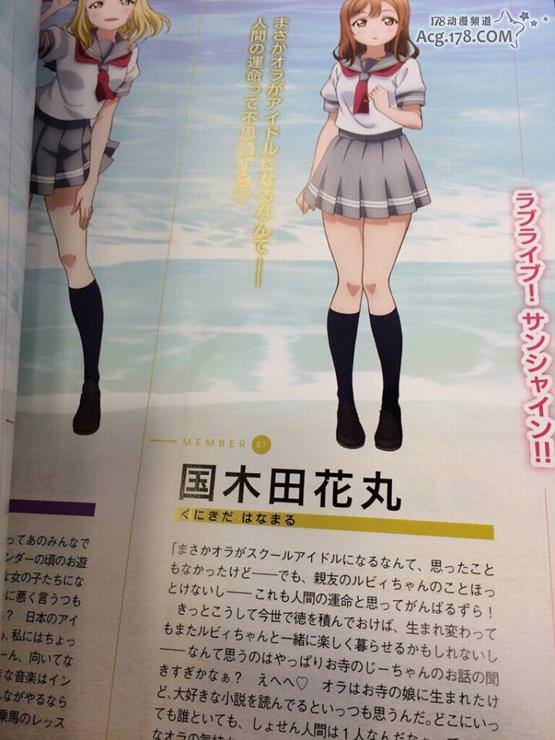 此前日升透露的新企畫「Love Live!Sunshine!!」在今日公布了主要角色名字以及配音聲優。本次企畫的故事情節全部由讀者制作,甚至組合名也是在電擊G's官網向讀者征集。此外,官方在挑選新組合聲優上下很大功夫,除了聲音,本次組合的聲優還需要具備舞台表演和舞蹈基礎。曾在「火影忍者」舞台劇扮演山中井野的伊波杏樹、擅長舞蹈的演員 小宮有紗、日本名模鈴木愛奈等人都會加入新組合的聲優陣容里。