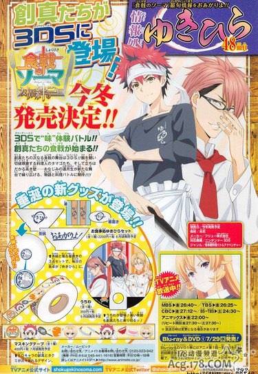 另外,動畫版「食戟之靈」目前也在放送中,本作的BD/DVD第一卷將于7月29日發售。