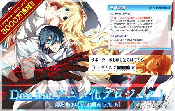 游戲「Dies irae」由游戲品牌light開發的18禁PC平台系列作品。故事以冬季的日本作為舞台,描寫來自納粹德國使用魔導兵器“聖遺物”的人們死斗的學園傳奇戰爭歌劇。之前曾為本作動畫化發起過集資計劃,並于5月13日正式宣布集資項目完成,動畫化決定的消息。