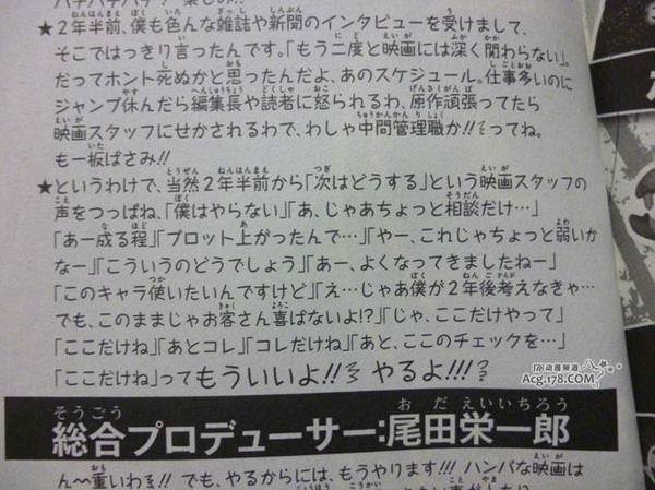 尾田老師還描述了一段他和電影STAFF之間的“斡旋”