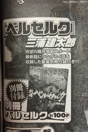 三浦建太郎大坑《劍風傳奇》恢複連載