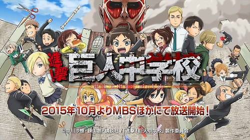 自從進擊的巨人成功TV動畫化後,相關的外傳、衍生小說漫畫就源源不斷的推出,其中有繼承諫山創本傳嚴肅風格的,也有走逗逼路線的,今天官方正式宣布《進擊的巨人》逗逼衍生漫畫《進擊!巨人中學》TV動畫化,定檔2015年10月新番,而且最重要的是所有聲優與TV版動畫相一致,這次我們將看到一群逗逼人類在中學的故事。