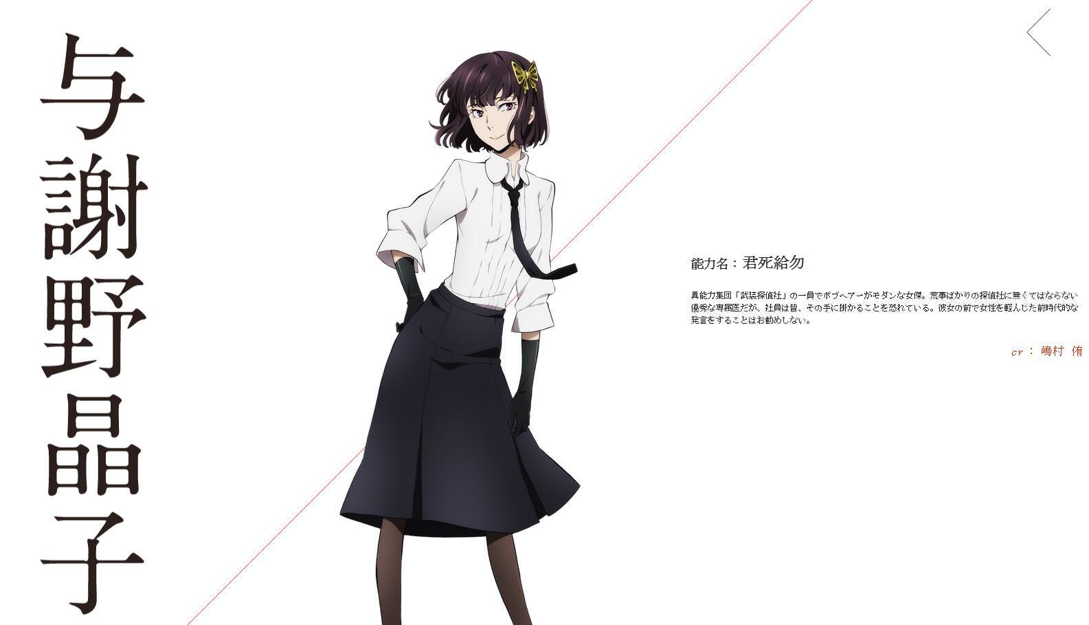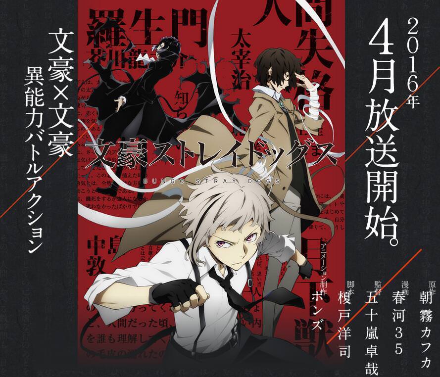 自從宣布由骨頭社制作動畫化後,《文豪野犬》何時播放變成了不少人的期待。在此之前,許多消息都指向此番將于2016年1月放送,不過今天,《文豪野犬》動畫公式正式公布了TV動畫版將在2016年4月播出的消息,並在追加公布了謝野晶子、谷崎奈緒美和福澤論吉這3名新角色的人設和出演聲優。