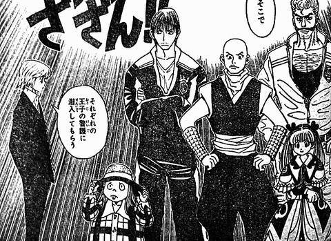 在非常久遠的349話《蠱毒》中,酷拉皮卡得知卡金國的6名王子正在招募保鏢,而在最新話中,酷拉皮卡和他的小伙伴們,包括師傅、半藏、芭蕉、旋律和比絲琪都參加了招募。本來想憑借這個機會接近第4王子切利多尼希的酷拉皮卡,卻意外成為了還是嬰兒的第14王子瓦布爾的保鏢。因為第1王子到第4王子都由自己的私家軍隊,所以根本沒有對外招募。而酷拉皮卡的那群小伙伴們都被分到了不同王子的麾下。