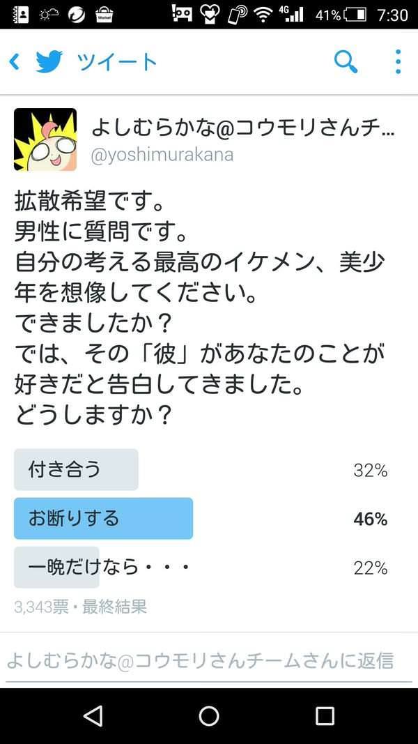 發起投票的推主也分析:女性有比男性更能容忍同性之間的肢體接觸的傾向,因為如此或許也比較能夠接受同性戀。(前提是投票者全員真的都是女性)發起投票的推主也分析:女性有比男性更能容忍同性之間的肢體接觸的傾向,因為如此或許也比較能夠接受同性戀。(前提是投票者全員真的都是女性)