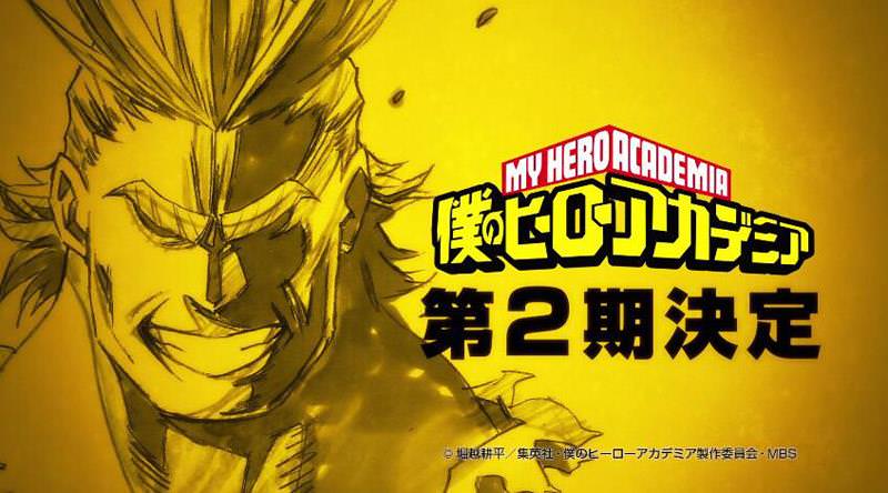由堀越耕平原作而改編成的電視動畫「我的英雄學院」,決定制作第2期。這一消息在于今天播出的本作第1期最後一集中得以發表。而集結了主人公出久,以及歐爾麥特和死柄木吊等劇中人物的全新視覺圖也正式亮相,同時,第二季確定PV也正式公開。