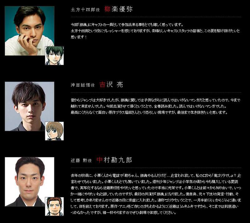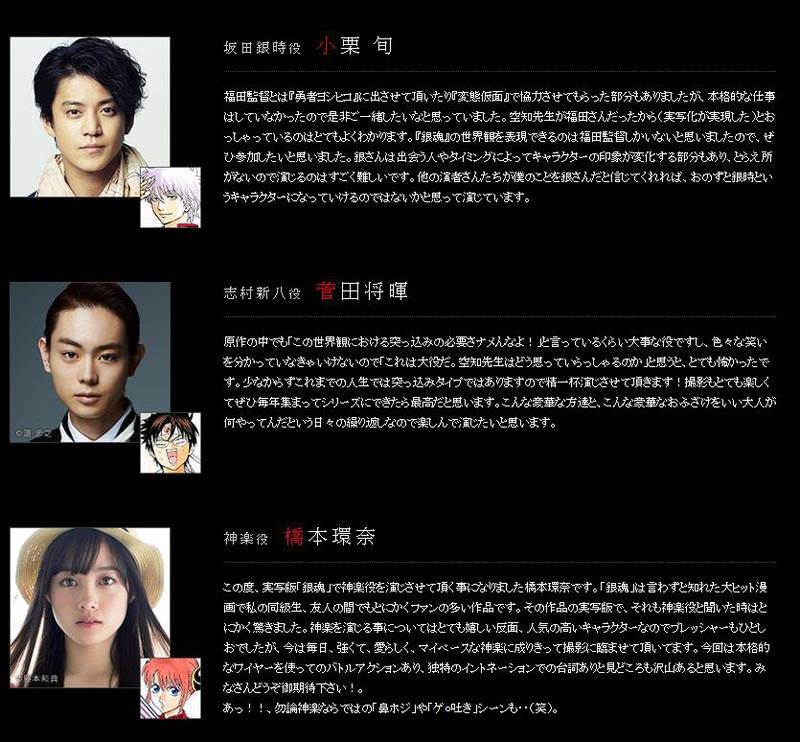 《銀魂》真人版電影主要角色演員正式公布