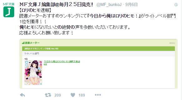 意料之中?輕小說《蘿莉的小白臉》推薦榜第一