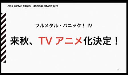 作家賀東招二筆下代表輕小說《全金屬狂潮》,繼2006年推出衍生外傳OVA《戰隊長悠閑的一天》之後,就遲遲沒有後續動畫制作消息,一直到去年Fantasia文庫大感謝祭才首度公開預計制作第四季動畫的情報。如今官方正式確定《全金屬狂潮 IV》將在2017年秋季展開播映,還請各位粉絲們多加期待更多後續消息!