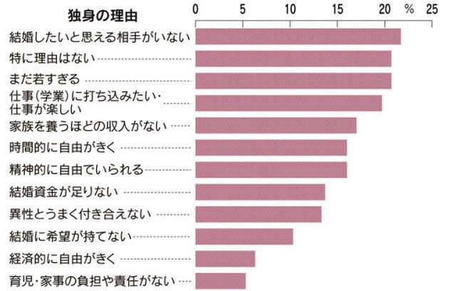 社會上有許多人因此指謫「高學曆女性延遲結婚時機,是少子化問題的原因」,其實現在年輕男性的結婚意願也很淡薄,調查結果顯示,20代男生中只有38.7%的人考慮結婚,比三年前減少了28.4%。