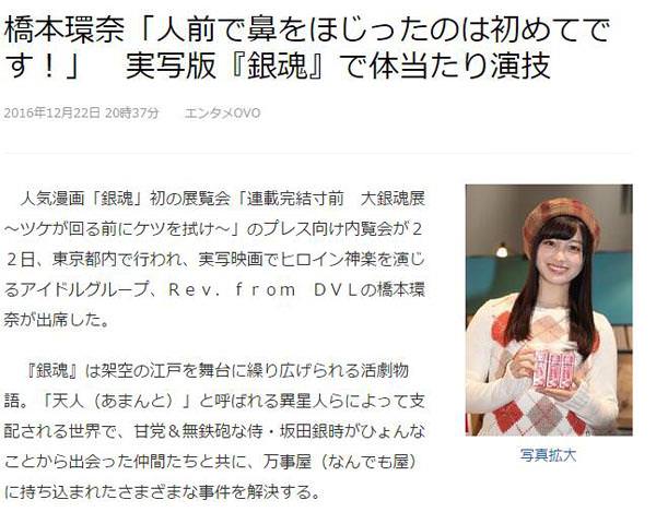 而作為該劇的重要女主角,飾演神樂的橋本環奈在出席並對媒體表示自己真的是認真的摳鼻子,導演福田雄一讓橋本環奈的手指第一關節都進入鼻子中摳,橋本環奈說自己手指進入鼻子稍微超過了第一關節。