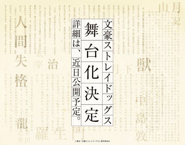 在昨天舉行的《文豪野犬》的官方活動上,在2016年播出了TV動畫的《文豪野犬》目前宣布了劇場版制作決定與舞台劇化得消息。其中動畫劇場版為完全新作,舞台劇的詳細信息將于日後公開。
