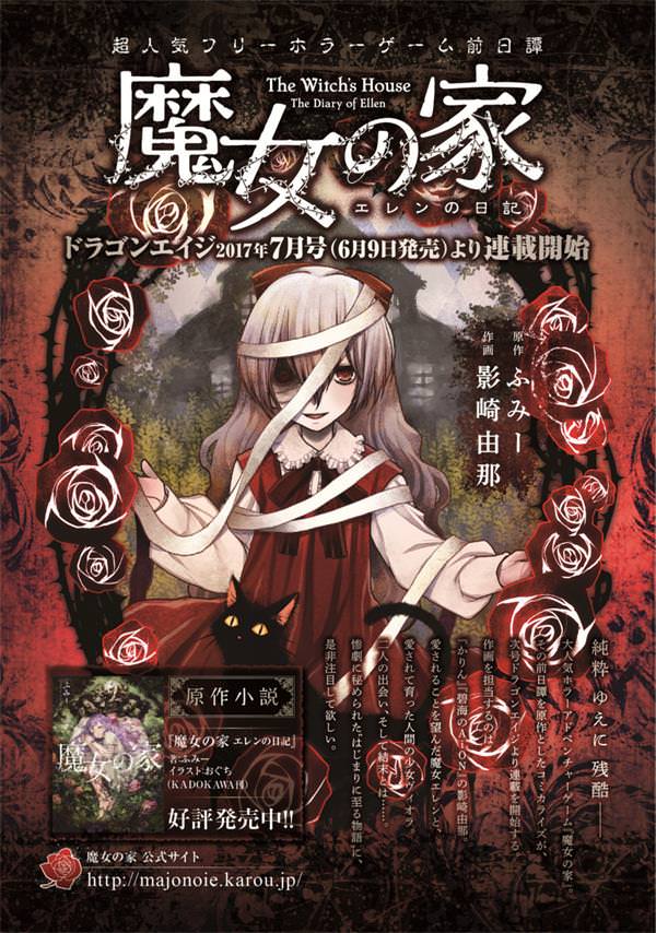 由ふみー用RPG Maker VX制作的免費恐怖類RPG游戲《魔女之家》宣布了漫畫化的消息,新作漫畫將在6月9日發售的《月刊Dragon Age》7月號上開始連載。本次的故事將根據前傳小說《魔女之家 艾蓮的日記》改編,創作過《增血鬼果林》的影崎由那負責本作的作畫。