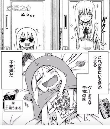 雖然第一話中的內容可以算是褒貶不一,但第二話中日本網友們紛紛指責作品山寨了漫畫《干物妹小埋》。從下圖中可以看到,雖然角色設定方面不同,但上方的本作漫畫內容與下方的《干物妹小埋》的漫畫內容在演出上十分相似……
