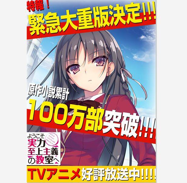 如果要評選7月新番最有話題性的作品,那麼《歡迎來到實力至上主義教室》絕對是最有力的競爭者之一了。而這部作品也是改編自同名輕小說,因此原作方面同樣引發了廣泛關注。近日官方宣布:本作品的累計發行量已經突破了100萬冊。