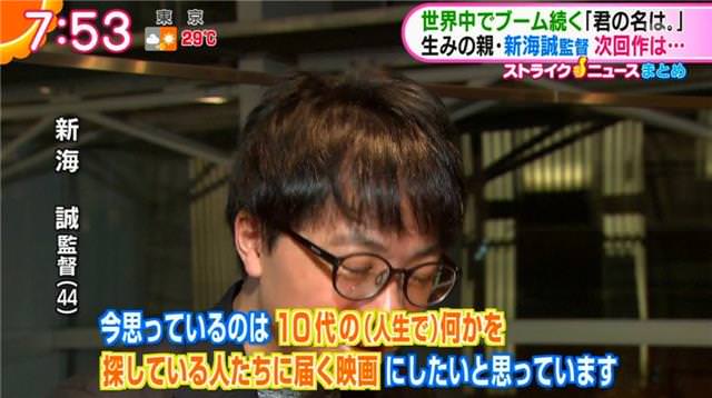 日本動畫導演新海誠在《你的名字。》火遍全球之後,也是備受關注,之前他宣布將會開始新作動畫的制作,預計將于2019年上映。現在有日本媒體對他進行了采訪,這部新作動畫已經在制作中了,而且新海誠還表示希望新動畫能帶給那些尋找人生道路的年輕人一些啟示。