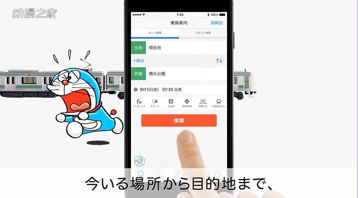由于太著急而把“任意門”忘了的哆啦A夢正在急急忙忙的向電車站跑去。但要怎麼坐車才最方便呢?這個時候雅虎的一款介紹換乘方式的APP幫了忙。另外雅虎還有一款以五分鍾為單位的天氣預報APP和根據定制的主題自動推送最新消息的APP,也參加了這次聯動活動。只不過真不知道哆啦A夢感動的點到底在哪里……