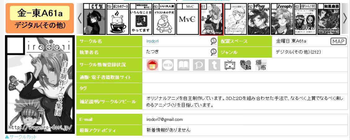 《獸娘動物園》第一季監督たつき確定出展C93。たつき監督這次將作為irodori的作者發布作品,販賣日期和攤位為12月29日東61a展位。然而這次並不是獸娘本,可能是新的自主動畫企劃吧。
