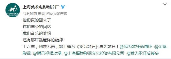 《我為歌狂2》要來了?今日上海美術電影制片廠發布微博,並公開了第二季的海報。