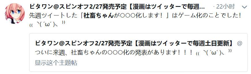 《生存下去吧! 社畜醬》在上周更新推特宣布將有“×××化”的新發表,對此不少網友們都很期待會是動畫化。但是《生存下去吧! 社畜醬》昨天正式宣布了該作將推出游戲作品,對于這一消息,不少粉絲表示有點失望,但還是很期待游戲。對此各位網友們有什麼看法嗎?不妨留言告訴企鵝娘吧。
