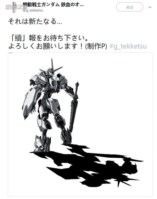 根據《機動戰士高達 鐵血的奧爾芬斯》的官方推特消息,系列或許將要出新作。不過從圖片上可以看出,說的似乎並不是很明白,也沒有具體說清楚新的是什麼。不過從特意把“敬請期待續報”中的“續”單獨提出來來看,有可能是系列的續作。雖然從之前的結局考慮,很難想象會如何來續。