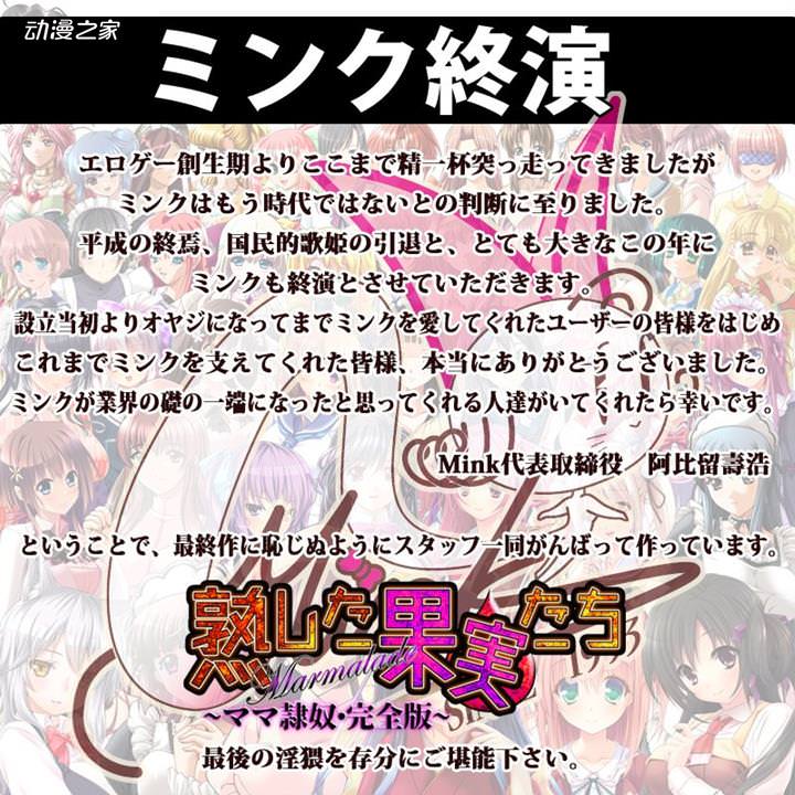 Mink是1993年成立的美少女游戲制作公司,本社位于東京都武藏野市吉祥寺。除了《夜勤病棟》系列,該公司還推出過《夜蝶的未來》、《媽媽奴隸》等作品。對于這次停業的消息,不少網友表示感到十分遺憾,並感謝Mink長達25年的陪伴。