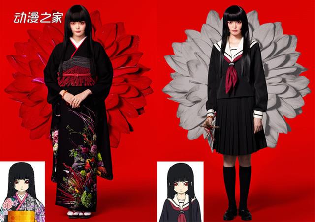 真人電影《地獄少女》公開了閻魔愛的全身定妝照與骨女、一目連、輪入道的定妝照。其中由玉城TINA飾演的閻魔愛,有身著校服和和服兩種服裝時的照片。
