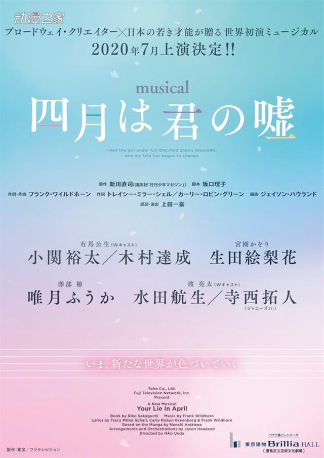 這次的音樂劇由小關裕太和木村達成飾演有馬公生,生田繪梨花飾演宮園薰。另外唯月風香、水田航生和寺西拓人也將參與演出。