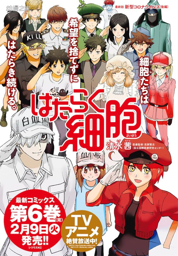 《工作細胞》是一部將人體內的細胞擬人化,講述細胞們如何在人體中工作的作品。本作在2018年曾被TV動畫化,TV動畫第二季的內容目前也在播出中。另外漫畫也有《工作細菌》、《不工作細胞》、《工作細胞BLACK》、《工作細胞BABY》等外傳作品,其中外傳《工作細胞BLACK》的TV動畫版目前也在播出中。