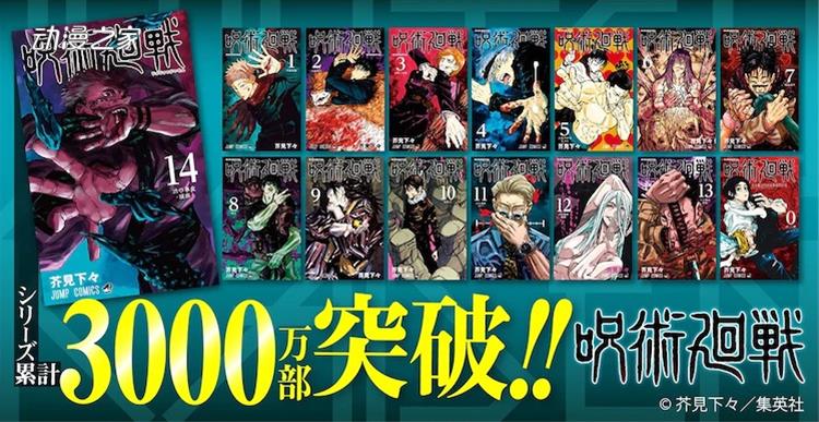由芥見下下創作的漫畫畫《咒術回戰》系列,宣布了累計發行部數突破3000萬部的消息,單行本第15卷的封面也一並公開。本作在2020年10月突破1000萬部,2021年1月突破2000萬部和2500萬部。